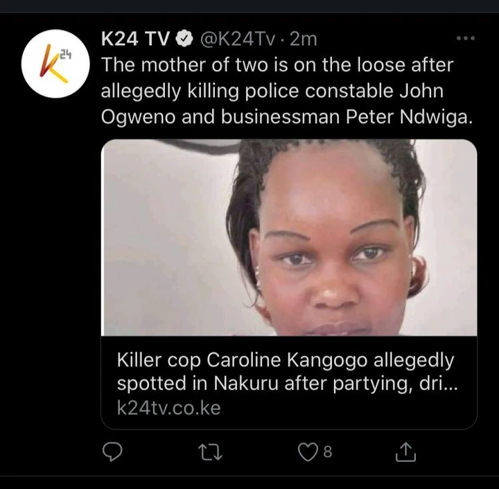 Detectives have commenced investigations into the death of caroline kangogo. 8news wric richmond @8news 13 hours ago. Ms kangogo has evaded detectives' dragnet for over a. Subscribe to our youtube channel for more great videos: Corporal caroline kangogo has been missing since monday when she is believed to have killed fellow officer john ogweno in the western town of nakuru.